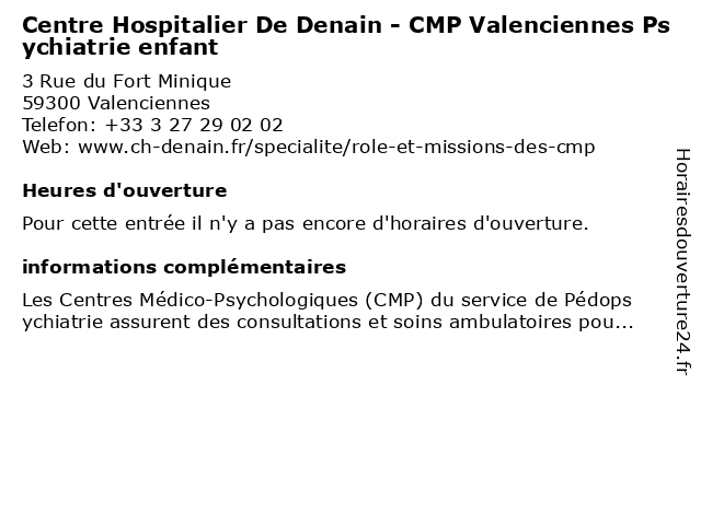 | Appeler Centre Hospitalier De Denain - CMP Valenciennes Psychiatrie enfant | |