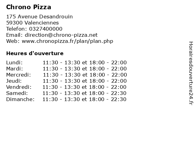 | Lundi | 11:30-13:30 et 18:00-22:00 |