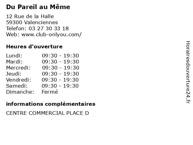 | Lundi | 09:30-19:30 |