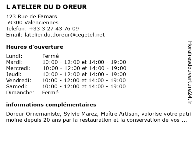 | Samedi | 10:00-12:00 et 14:00-19:00 |