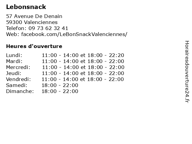 | Lundi | 11:00-14:00 et 18:00-22:20 |