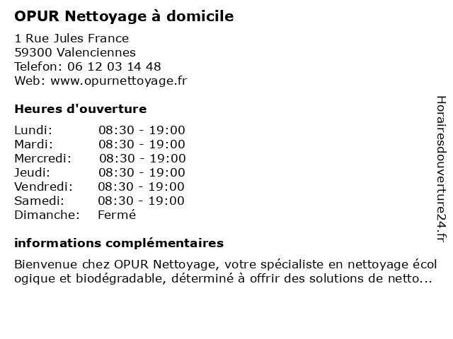 | Samedi | 08:30-19:00 |