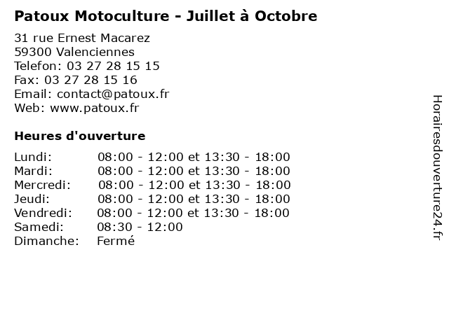 | Mardi | 08:00-12:00 et 13:30-18:00 |