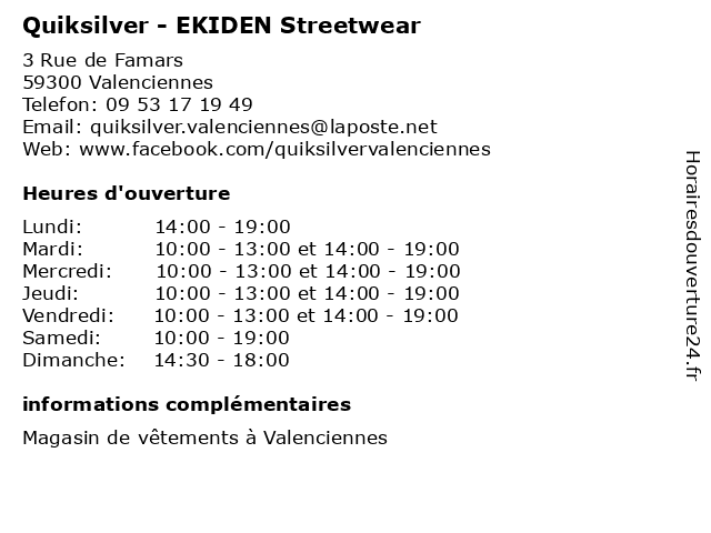 | Mercredi | 10:00-13:00 et 14:00-19:00 |