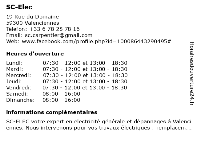 | Lundi | 07:30-12:00 et 13:00-18:30 |