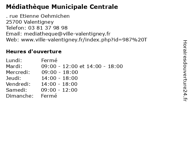 | Mardi | 09:00-12:00 et 14:00-18:00 |
