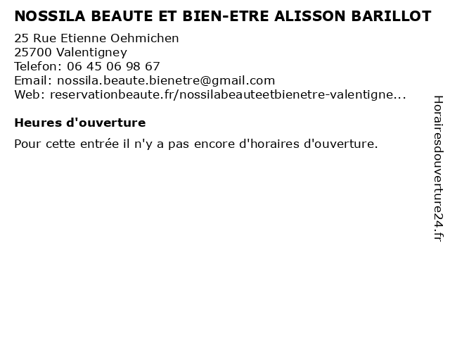 Appeler NOSSILA BEAUTE ET BIEN-ETRE ALISSON BARILLOT | |