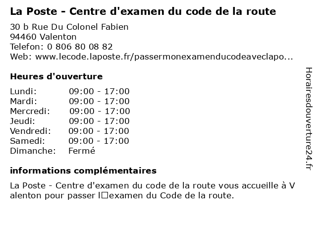 Termes de recherche pour La Poste - Centre d'examen du code de la route:poste, la, du, de, route, centre, code, d'examen, centre d'évaluation scolaire, école technique |