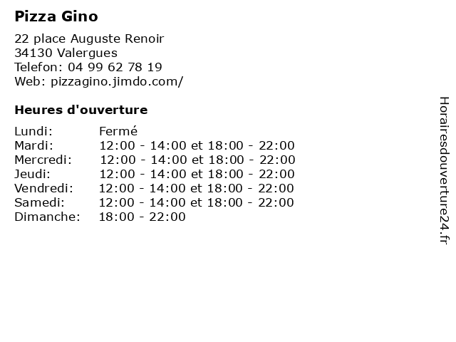 | Samedi | 12:00-14:00 et 18:00-22:00 |