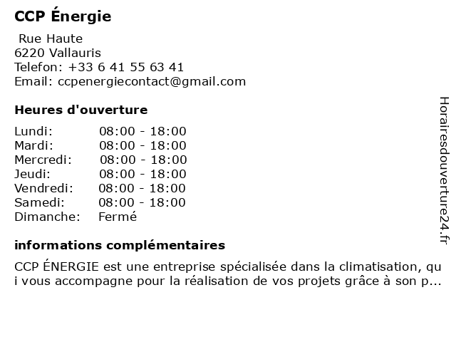 | Samedi | 08:00-18:00 |