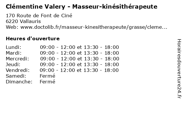 | Lundi | 09:00-12:00 et 13:30-18:00 |