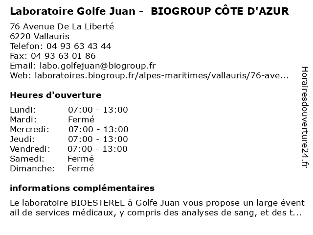 Termes de recherche pour Laboratoire Golfe Juan - BIOGROUP CÔTE D'AZUR:laboratoire, juan, golfe, cote, d'azur, biogroup, dépistages, laboratoire de diagnostic |