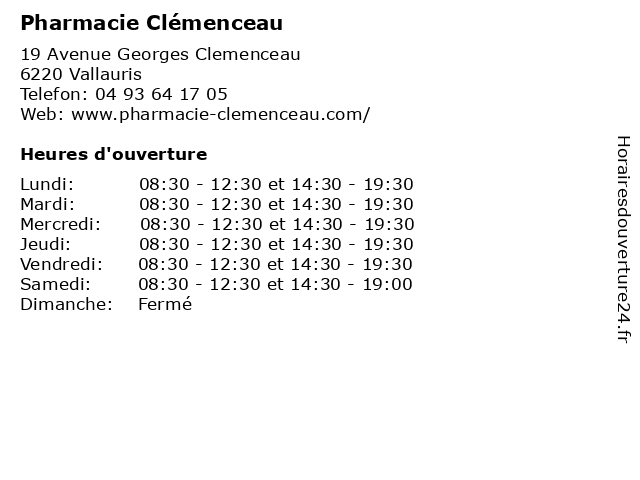 | Lundi | 08:30-12:30 et 14:30-19:30 |