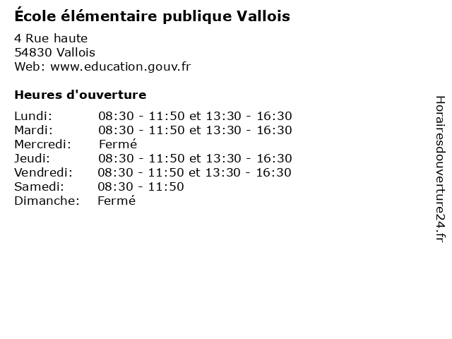 | Mardi | 08:30-11:50 et 13:30-16:30 |