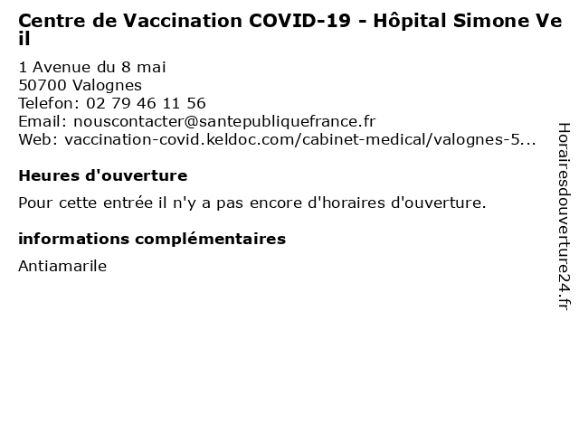| Appeler Centre de Vaccination COVID-19 - Hôpital Simone Veil | |