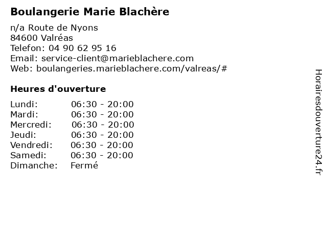 | Samedi | 06:30-20:00 |