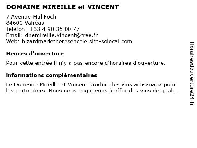 Appeler DOMAINE MIREILLE et VINCENT | |