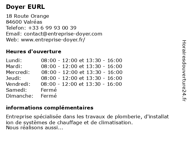 | Lundi | 08:00-12:00 et 13:30-16:00 |