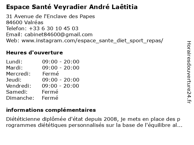 1 Agence Immobilière Veyradier (Distance: 1,01 km) 44 Cours Victor Hugo, 84600 Valréas agence, immobilière, veyradier 2 AIST84 - Santé au Travail (Distance: 1,06 km) - Avenue Saint-Paul-de Quebec, 84600 Valréas aist84, au, centre, de, famille, médical, santé, service, travail 3 Autoneo - Espace Auto Valréas (Distance: 2,07 km) - ZI de la Grèze, 84600 Valréas atelier, auto, automobile, autoneo, carrosserie, espace, garage, reparation, valréas 4 Autoneo - Espace Auto Valréas (Distance: 6,35 km) - route de la Baume de transit, 84600 Valréas auto, automobile, autoneo, carrosserie, concessionnaire, entretien, espace, garage, réparation, valréas 5 Espace Conseil France Rénov (Distance: 13,06 km) 15 Avenue Paul Laurens, 26110 Nyons accueil, conseil, espace, france, maison, rénov 6 Orsac Atrir Santé et Médico-Social. (Distance: 14,25 km) 440 Route des Rieux, 26110 Nyons atrir, et, médico, orsac, santé, social. |