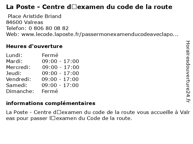 Termes de recherche pour La Poste - Centre d’examen du code de la route:poste, la, du, de, route, centre, code, d’examen, centre d'évaluation scolaire, école technique |