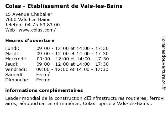 Termes de recherche pour Colas - Etablissement de Vals-les-Bains:les, de, bains, vals, colas, etablissement, entreprise générale de construction |
