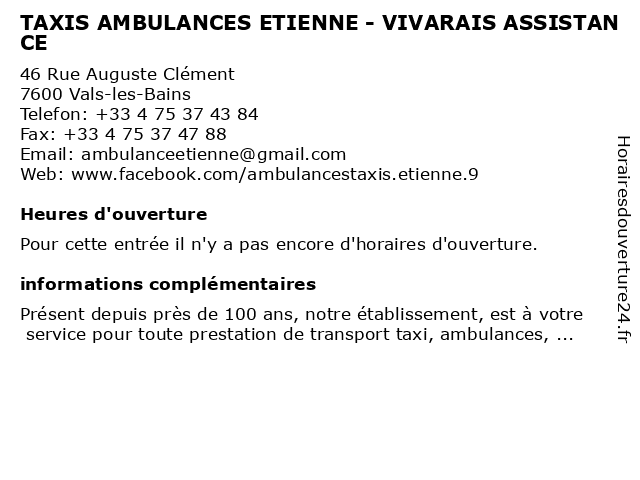 | Appeler TAXIS AMBULANCES ETIENNE - VIVARAIS ASSISTANCE | |