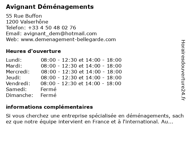 | Lundi | 08:00-12:30 et 14:00-18:00 |