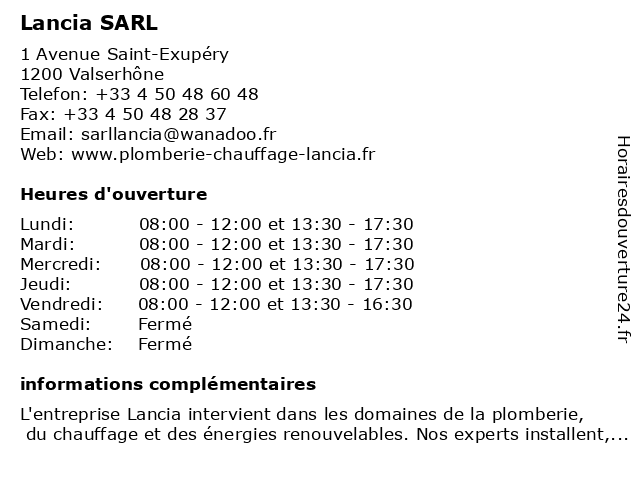 | Lundi | 08:00-12:00 et 13:30-17:30 |