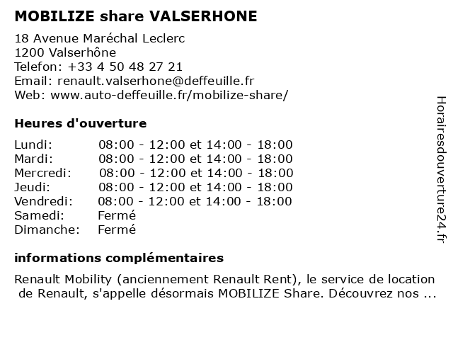 1 DACIA VALSERHONE DEFFEUILLE Automobiles (Distance: 0,00 km) 18 Avenue Maréchal Leclerc, 01200 Valserhône automobiles, dacia, deffeuille, valserhone 3 GlassAuto VALSERHONE (Distance: 1,08 km) 338 Rue Santos Dumont, 01200 Valserhône changement pare-brise, changement vitrage, garage automobile, glassauto, optiques de phare, remplacement pare-brise, remplacement vitrage, réparation pare-brise, réparation vitrage, rétroviseurs, toit ouvrant, valserhone 4 Libre Service Valserhone (Distance: 1,66 km) 22 Rue Parmentier, 01200 Valserhône libre, service, valserhone 5 MMA Assurances VALSERHONE (Distance: 1,77 km) 55 Bis Rue de la République, 01200 Valserhône assurance au tiers, assurance auto, assurance auto au tiers, assurance auto pas cher, assurance auto tous risques, assurance habitation, assurance habitation pas cher, assurance local, assurance multirisque, assurance professionnelle, assurance santé, assurance tous risques, assurance voiture, assurances, flotte, garantie décennale, mma, mutuelle, mutuelle sénior, rc pro, responsabilité civile, valserhone 6 MOBILIZE share ST-CLAUDE (Distance: 29,58 km) 21 Rue Carnot, 39200 Saint-Claude claude, mobilize, share, st |