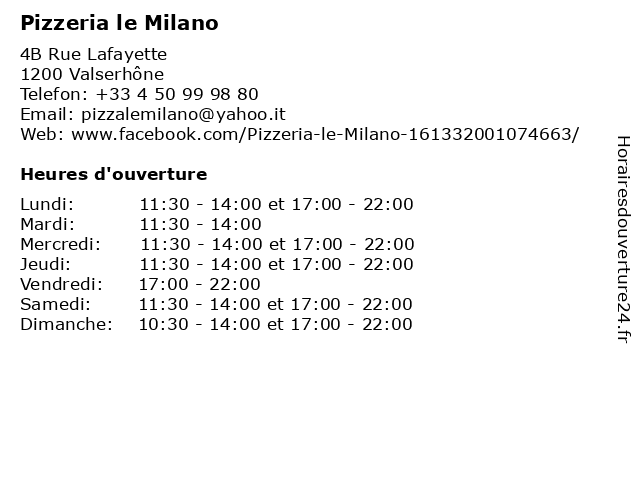 | Lundi | 11:30-14:00 et 17:00-22:00 |