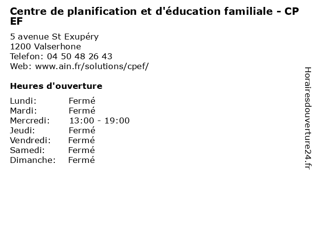 1 Centre de planification et d'éducation familiale - CPEF (Distance: 16,87 km) 11 rue des Monts d'Ain, 01130 Nantua accompagnement, aide, centre, cpef, d'éducation, de, et, familial, familiale, information, planification, planning, santé 2 Centre de planification et d'éducation familiale - CPEF (Distance: 20,43 km) 188 rue Anatole France, 01100 Oyonnax accompagnement, aide, centre, cpef, d'éducation, de, et, familial, familiale, information, planification, planning, santé 3 Centre de planification et d'éducation familiale - CPEF (Distance: 20,62 km) Rue Amédée VIII de Savoie, 74164 Saint-Julien-en-Genevois accompagnement, aide, centre, cpef, d'education, d'éducation, de, et, familial, familiale, information, planification, planning, santé 4 Centre de planification et d'éducation familiale - CPEF (Distance: 28,60 km) 789 rue de Vessy, 01210 Ornex accompagnement, aide, centre, cpef, d'éducation, de, et, familial, familiale, information, planification, planning, santé 5 Centre de planification et d'éducation familiale - CPEF (Distance: 32,97 km) 1 rue du Jura, 74100 Ambilly accompagnement, aide, ambilly, antenne, centre, cpef, d'education, d'éducation, de, et, familial, familiale, information, planification, planning, santé 6 Centre de planification et d'éducation familiale - CPEF (Distance: 38,90 km) 558 route de Findrol, 74130 Contamine-Sur-Arve accompagnement, aide, centre, cpef, d'education, d'éducation, de, et, familial, familiale, information, planification, planning, santé |