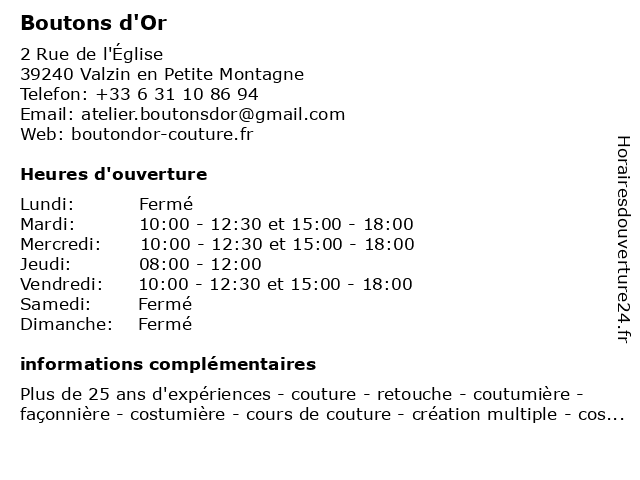 | Mercredi | 10:00-12:30 et 15:00-18:00 |