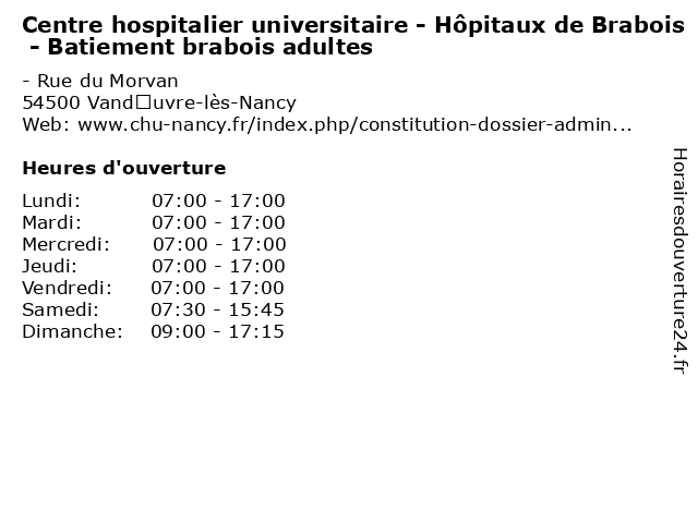 | Lundi | 07:00-17:00 |