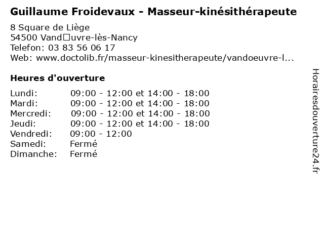 | Lundi | 09:00-12:00 et 14:00-18:00 |