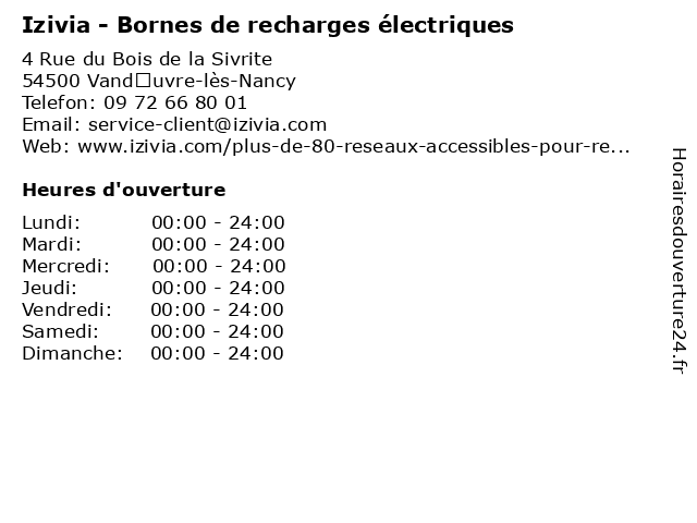 1 Izivia - Bornes de recharges électriques (Distance: 0,46 km) 8 Route de l'Aviation, 54600 Villers-lès-Nancy automobile, borne, bornes, de, izivia, recharge, recharges, électrique, électriques 2 Izivia - Bornes de recharges électriques (Distance: 1,59 km) 1 Rue du Morvan, 54500 Vandœuvre-lès-Nancy automobile, borne, bornes, de, izivia, recharge, recharges, électrique, électriques 3 Izivia - Bornes de recharges électriques (Distance: 4,87 km) 22 Rue Abbé Muths, 54230 Neuves-Maisons automobile, borne, bornes, de, izivia, recharge, recharges, électrique, électriques 4 Izivia - Bornes de recharges électriques (Distance: 5,14 km) 1 Rue de la Mortagne, 54520 Laxou automobile, borne, bornes, de, izivia, recharge, recharges, électrique, électriques 5 Izivia - Bornes de recharges électriques (Distance: 7,19 km) 1B Rue Lucien Galtier, 54410 Laneuveville-devant-Nancy automobile, borne, bornes, de, izivia, recharge, recharges, électrique, électriques 6 SDEA - Bornes de Recharges Electrique (Distance: 3,83 km) 12 Rue de Norvège, 54500 Vandœuvre-lès-Nancy automobile, borne, bornes, de, electrique, recharge, recharges, sdea, électrique |