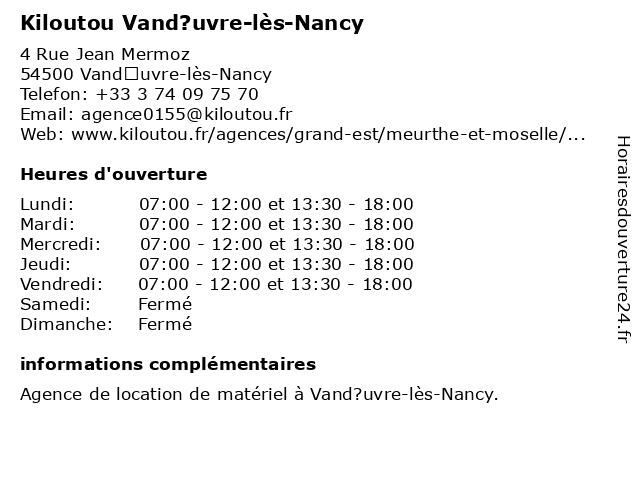 | Lundi | 07:00-12:00 et 13:30-18:00 |