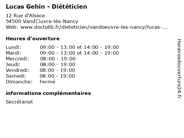 | Mardi | 09:00-13:00 et 14:00-19:00 |