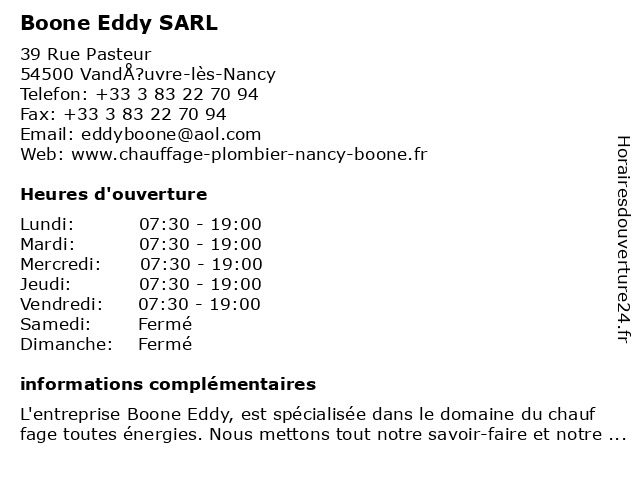 3 Boone -Dubois Émilie (Distance: 24,79 km) 2 Rue de la Gare, 54113 Blénod-lès-Toul boone, dubois, émilie 4 5 Artisanservices SARL (Distance: 0,82 km) 2 Rue Bernard Palissy, 54500 VandÅ?uvre-lès-Nancy artisanservices, sarl 6 Homme En Devenir Sarl (Distance: 1,10 km) 23 Boulevard de l'Europe, 54500 VandÅ?uvre-lès-Nancy devenir, en, homme, sarl |