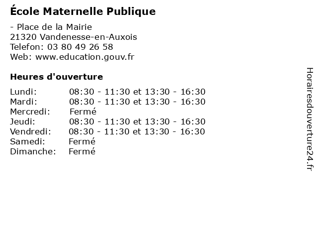 | Mardi | 08:30-11:30 et 13:30-16:30 |