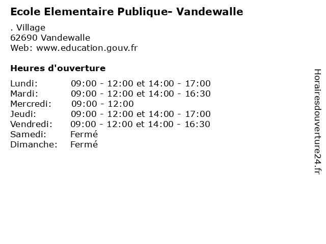 1 Ecole Primaire Publique- Vandewalle (Distance: 0,00 km) . Village, 62690 Vandewalle cours, ecole, primaire, publique, services, vandewalle 2 Ecole Maternelle Publique- Vandewalle (Distance: 0,00 km) . Village, 62690 Vandewalle cours, ecole, maternelle, publique, services, vandewalle |