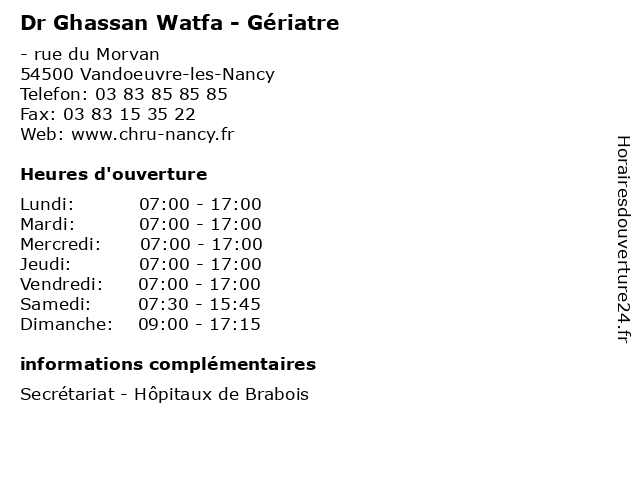 | Lundi | 07:00-17:00 |