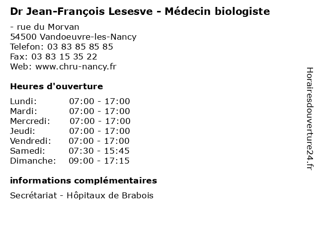 | Lundi | 07:00-17:00 |