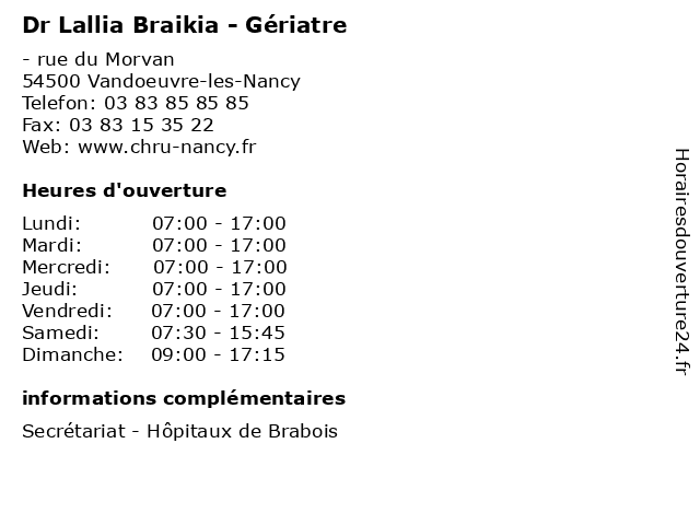 | Lundi | 07:00-17:00 |
