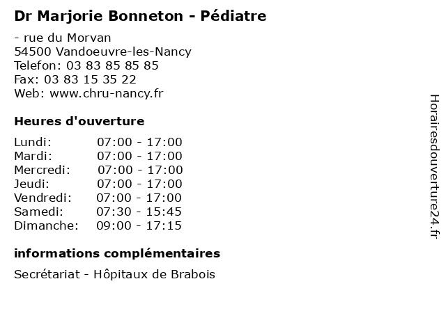 | Lundi | 07:00-17:00 |
