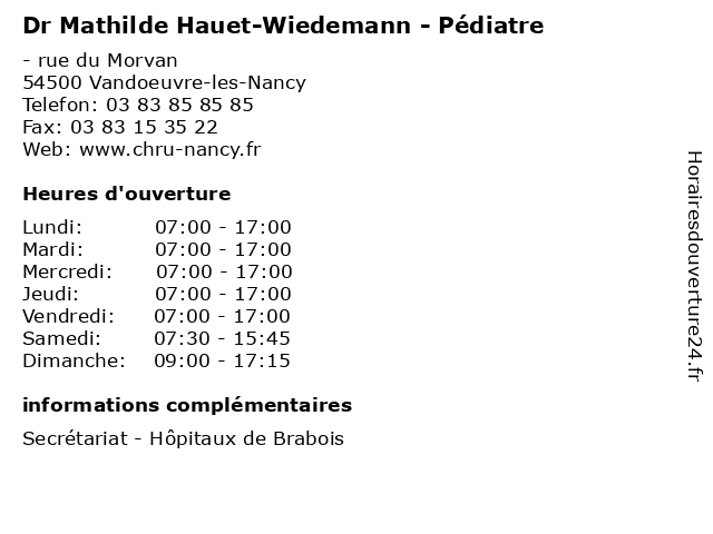 | Lundi | 07:00-17:00 |