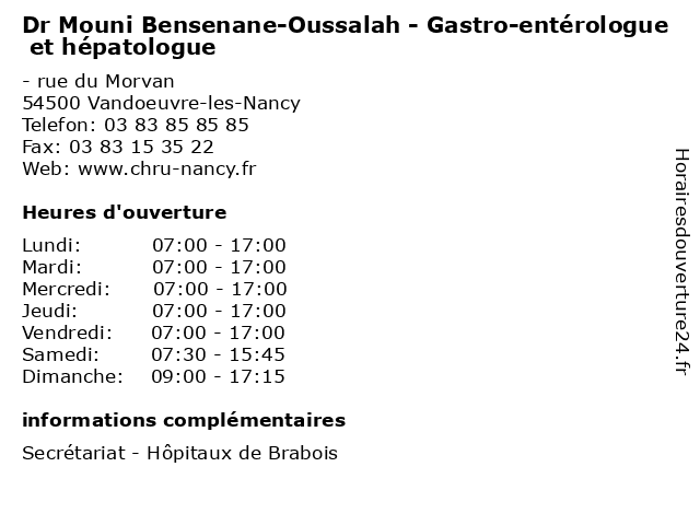| Lundi | 07:00-17:00 |