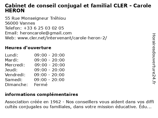 Termes de recherche pour Cabinet de conseil conjugal et familial CLER - Carole HERON:et, de, cabinet, carole, conseil, heron, familial, cler, conjugal |