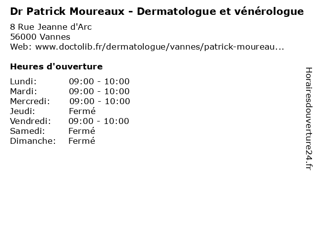 1 Dr Christelle Pruvost Balland - Dermatologue et vénérologue (Distance: 0,35 km) 15 Place de la République, 56000 Vannes balland, boutons, christelle, dermatologue, docteur, dr, et, liason, pruvost, venerologue, vénérologue 2 Dr Maria Valérie Demoulin - Dermatologue et vénérologue (Distance: 0,42 km) 2 Rue Joseph le Brix, 56000 Vannes bouton, demoulin, dermato, dermatologue, dr, et, maria, soins, valérie, vénérologue 3 Dr Patrick Meigne - Médecin généraliste (Distance: 0,68 km) 31 Avenue Victor Hugo,, 56000 Vannes docteur, dr, generaliste, généraliste, medical, meigne, médecin, patrick, soin 4 Dr Patrick Tognon - Médecin généraliste (Distance: 1,53 km) 20 Boulevard Général Maurice Guillaudot, 56000 Vannes consultation, docteur, dr, généraliste, med, medecine, medical, médecin, patrick, tognon, traitement 5 Maître Patrick Eveno - Avocat (Distance: 1,59 km) 14 Boulevard de la Résistance, 56000 Vannes avocat, avocate, avocats, barreau, conseil, cours, droit, défense, eveno, instance, juridictionnelle, juridique, justice, maître, négociation, patrick, pénal, tribunal, tribunaux 6 Piers Patrick Au nid du Golfe (Distance: 5,85 km) 11 Rue du Clayo, 56610 Arradon au, du, golfe, nid, patrick, piers |