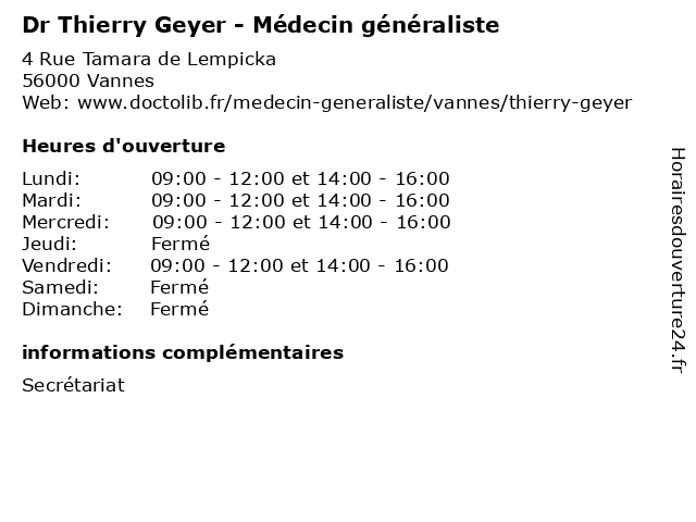 | Mercredi | 09:00-12:00 et 14:00-16:00 |