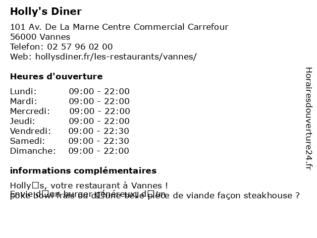 | 1 Oscar Lunch & Diner (Distance: 0,91 km) 4 Rue Gay Lussac, 56000 Vannes bar, bistro, bistrot, brasserie, café, diner, lunch, oscar, restaurant, restauration 2 Virgin Breizh Diner (Distance: 2,41 km) 8 Rue Pierre-René Rogue, 56000 Vannes breizh, diner, kerenoma, restaurants, virgin 3 McDonald's Vannes (Distance: 0,24 km) 120 Avenue de la Marne, 56000 Vannes burgers, fast, food, hamburgers, mcdonald's, rapide, restaurant, restauration, vannes 4 Burger King - Salle (Distance: 0,71 km) 32 Rue Edgar Touffreau, 56880 Ploeren burger, desserts, fast food, frites, hamburgers, horaires, king, restaurant, salle 5 L'Abri-Côtier (Distance: 5,68 km) - Rue de la Carrière, 56610 Arradon bar, café, côtier, fruits de mer, hamburgers, l'abri, restaurant, service en salle 6 McDonald's (Distance: 43,43 km) 118 Rue Andreï Sakharov, 56600 Lanester burgers, fast, food, hamburgers, mcdonald's, rapide, restaurant, restauration |